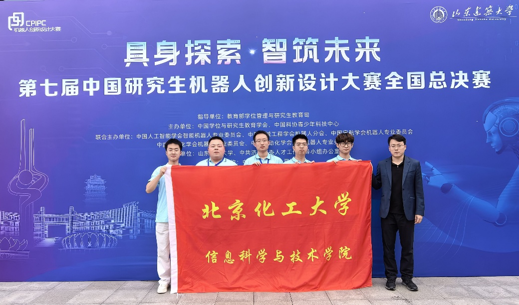 After two days of intense competition, the team "Hua'an Zhixun" (Chemical Safety Intelligent Inspection), composed of Huo Dongjie, Wang Zixu, Wang Dengshuo, Yu Sihuang and Yan Yukang under the guidance of Professor Cao Zhengcai and Associate Professor Zhang Dong from the College of Information Science and Technology, won the national championship with their entry titled "Zhixun Ultra"—Embodied Intelligent Inspection Robot for Industrial Scenarios. This achievement marks a historic breakthrough for the university in winning this award (breaking the university's "zero record" in this award category).