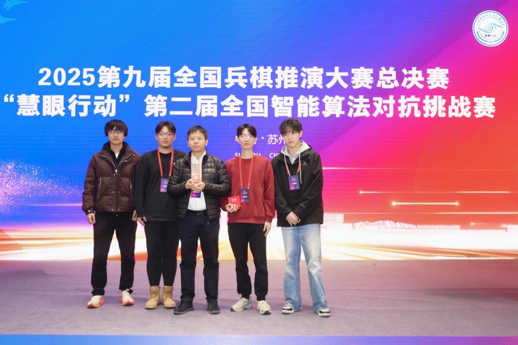 From December 2 to 5, the finals of the 9th National Wargame Simulation Competition concluded in Suzhou City, Jiangsu Province. The team from Beijing University of Chemical Technology (team name: Smart Strategy Vanguard; team leader: Xiao Yulong; team members: Han Binghao, Yang Fan, Fang Bohan), under the guidance of Professor Cao Zhengcai, won the National Championship in the Human-Machine Collaboration Special Competition after fierce competition, thanks to their solid professional skills and excellent teamwork—securing the title of this event for the second time within three years.